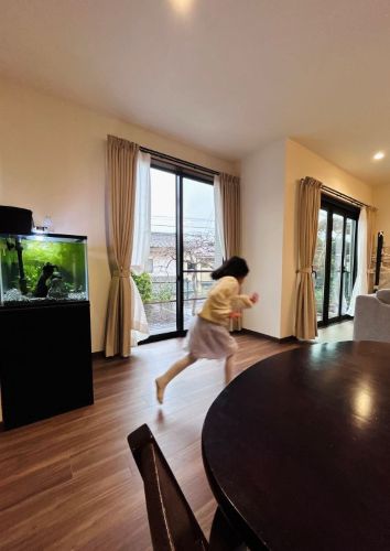 本来家具を置く事を想定してご提案をしておりますので、こんな風に生活をしている画像を見せていただく事は本当にありがたいことです。ご覧になる方にとっても「自分の家なら、、」と想像をすることが容易かと思います。