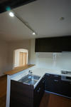 キッチン 吊戸棚を撤去しシンク前にはカウンターを造作