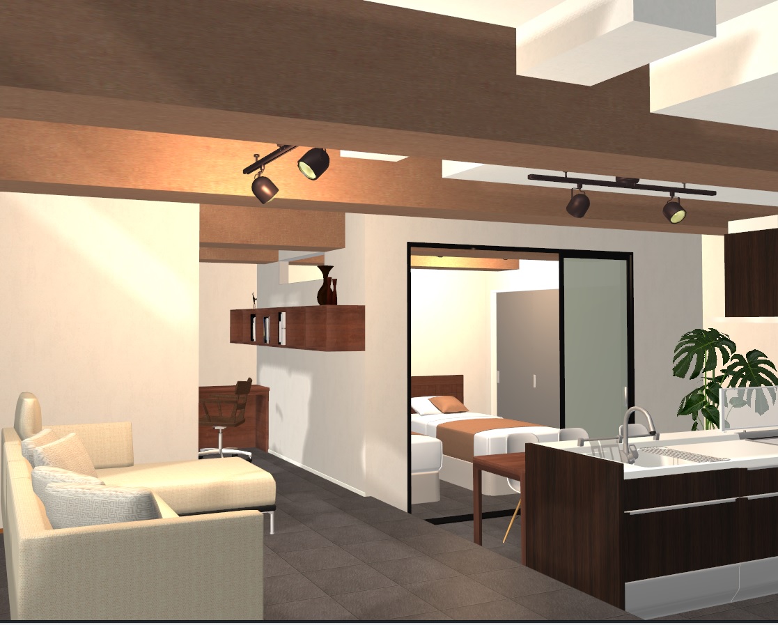 段差と梁に阻まれても、空間を生かしてリノベーションを目指した日々、予算を無視した設計、無垢材の力強さ、一人暮らしだからわかる住まいづくりの楽しさそんなハシモトの想いを詰めてさあ、走りだせ!