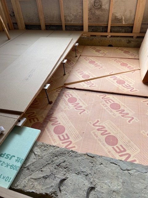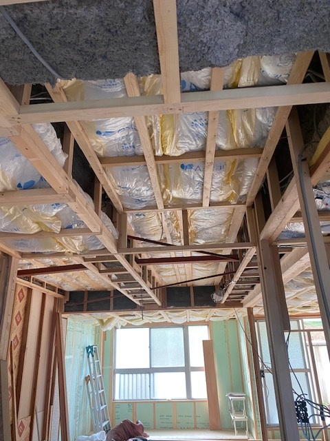 この篠原マンション、仕上がりは一見床はコンクリート打ちっぱなし、天井は躯体のままのという風な仕上がりとなっておりますが、実はしっかりと断熱工事をしております。