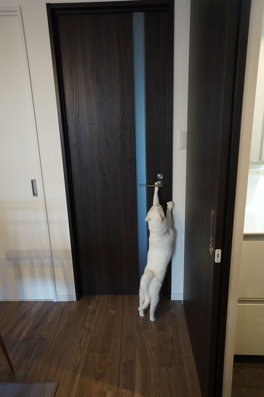 いたずらっこカイ君がドアを開けて行き来しないよう