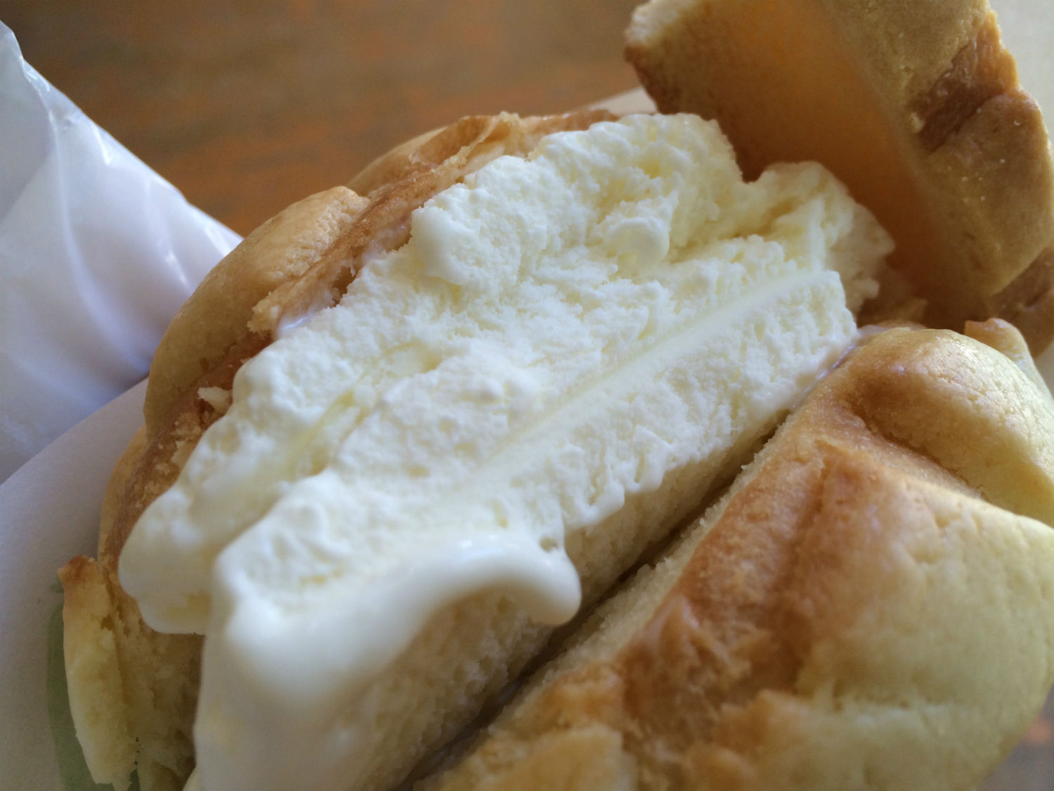 焼きたてのメロンパンに冷たいバニラアイスが入ってます