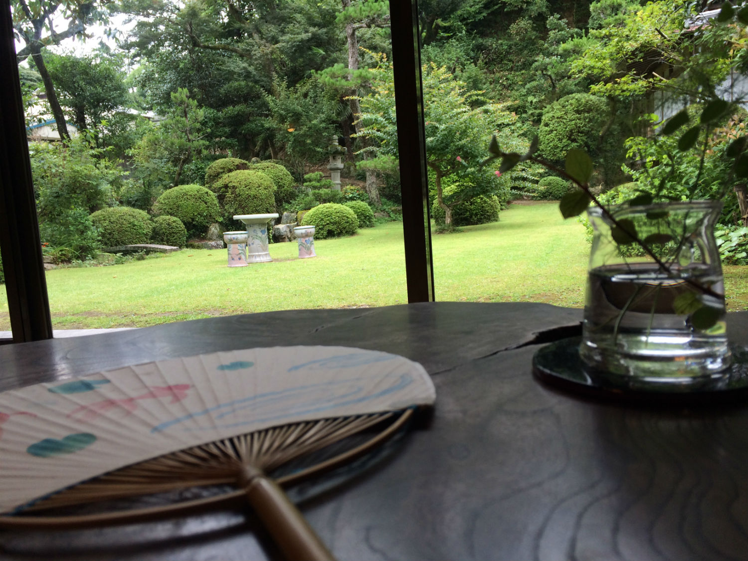 広いお庭と離れの茶室を望むことができます