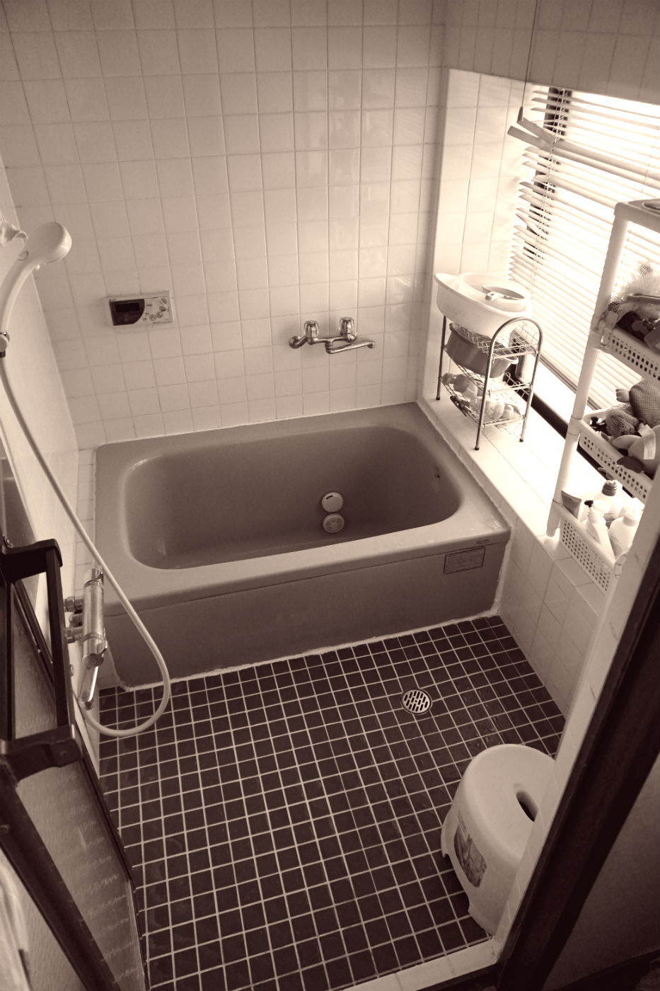 お風呂は既存の出窓部分を浴槽とカウンターにして『増築なしの浴室拡張』