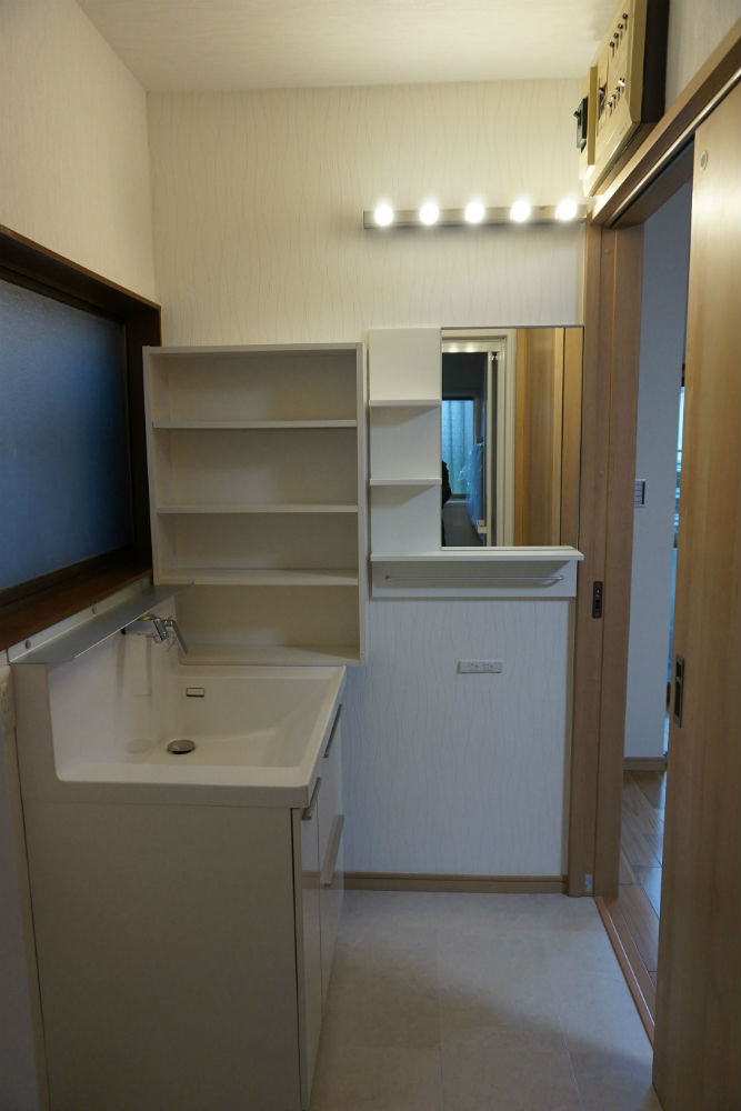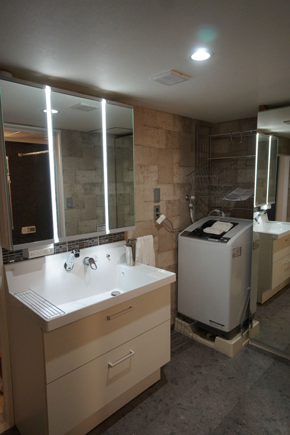 洗面台はTOTOオクターブにIKEAの照明とミラーをあわせてカスタマイズ