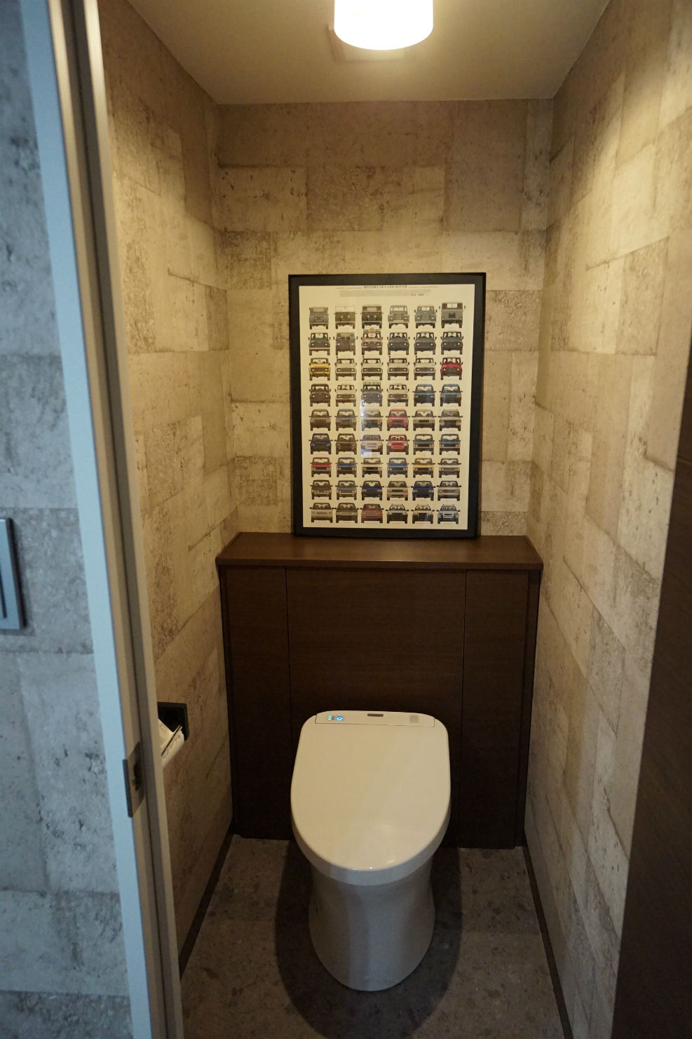 トイレ TOTOレストバルに石目調のクロスでオサレ。