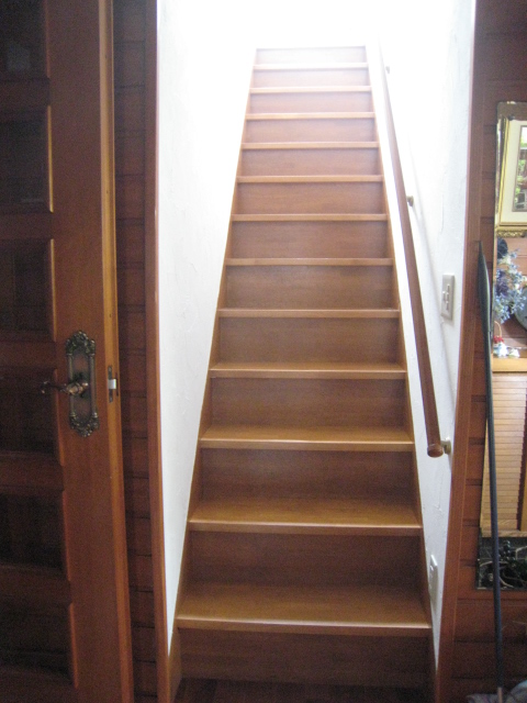 | 新しい階段室は、1階玄関脇で 内側は、和室の押入れの中を解体 押入れの襖はそのままなので、 和室には手を入れずに済みました |