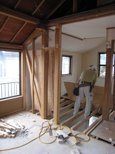 | ② 解体と 吹き抜けの根太組 |