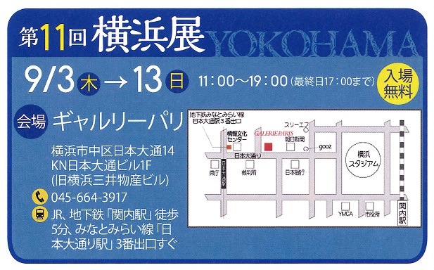 9/3(木)→13(日) 日本大通ギャルリーパリにて